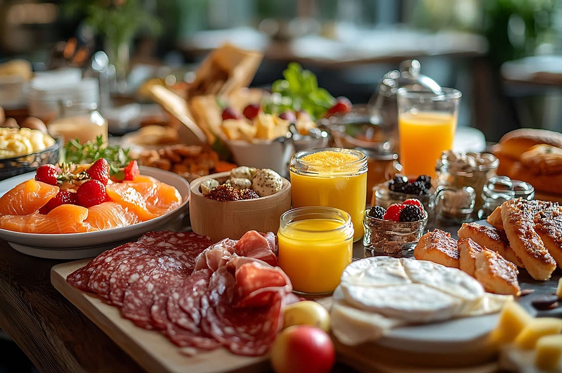 Servi le lendemain matin dans la salle du restaurant sous forme de buffet.
