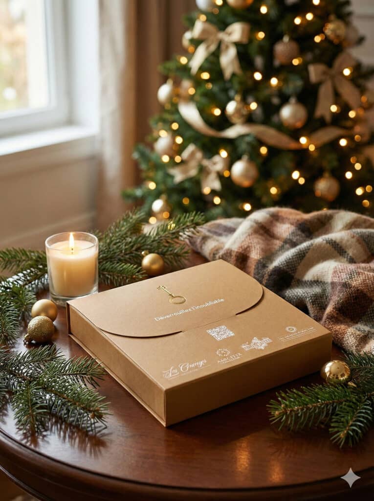 Ne venez pas les mains vides. Sublimez votre surprise en offrant un véritable coffret physique prêt à déposer au pied du sapin.